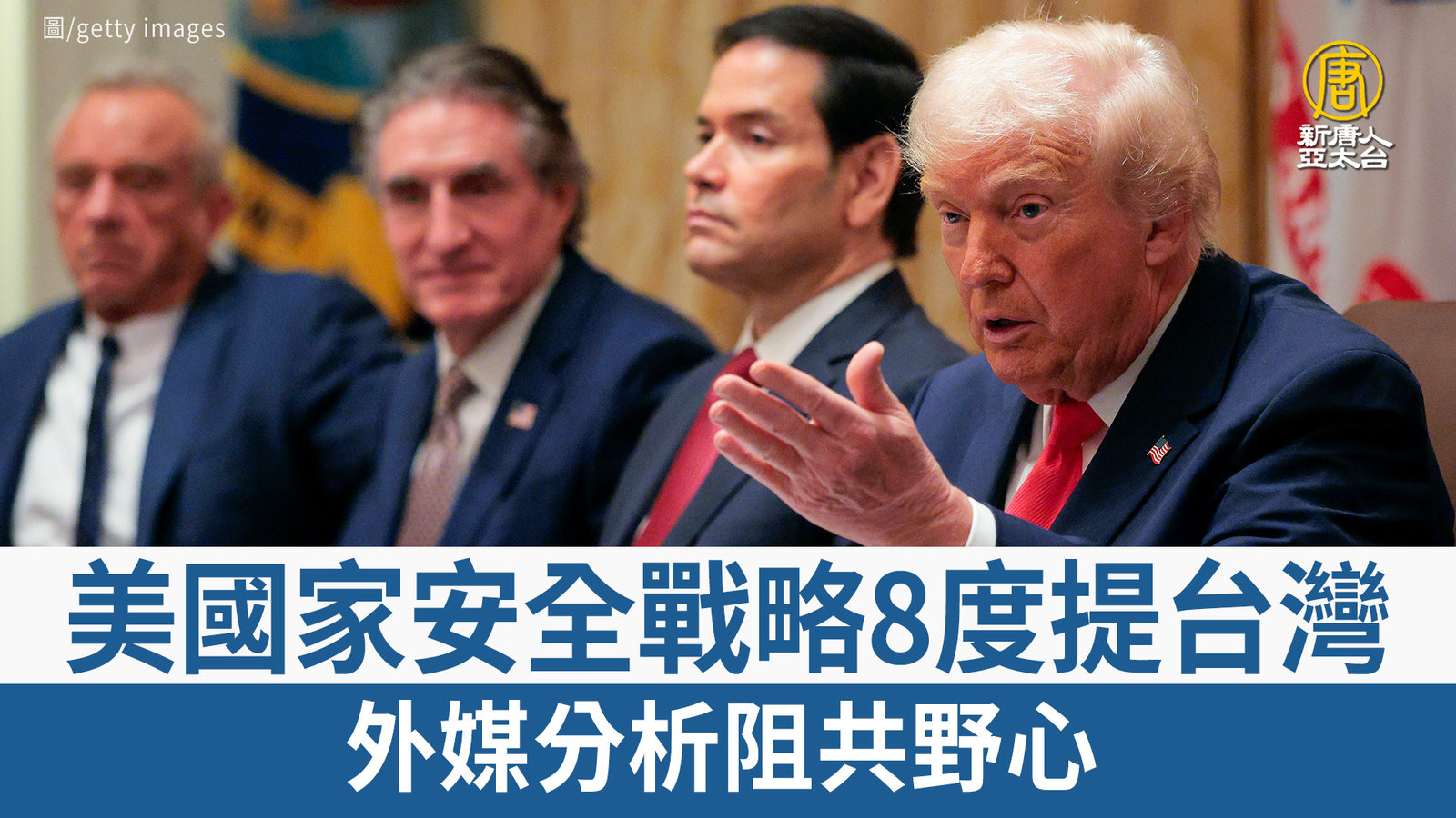 美國白宮發布2025國家安全戰略8度提到台灣,指出台灣至關重要的三大理由,因此遏止台海衝突為「當務之急」。外媒分析,這份國家安全戰略比起8年前措辭更加強硬,很可能是針對中共在全球和區域爭霸的野心。 //www.ntdtv.com.tw/public/uploads/assets/2025/12/06/2025-12-06-693419f6500a5-220x123-169.jpg 台海局勢|國家安全戰略|第二島鏈|國防預算|章家敦2025-12-06 20:29:57