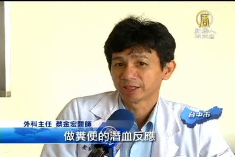 癌症是國人十大死因榜首,而大腸癌更高居癌症死亡的第三位。醫師表示,大腸癌沒有好發的年齡,不良的飲食習慣與生活作息是重要的誘發原因,如果能愈早發現,治癒率愈高。 //asset2.ntdtv.com.tw/public/uploads/video/2011/07/17/20110717-3465759.flv 大腸癌|衛生署台中醫院2011-07-16 21:48:43