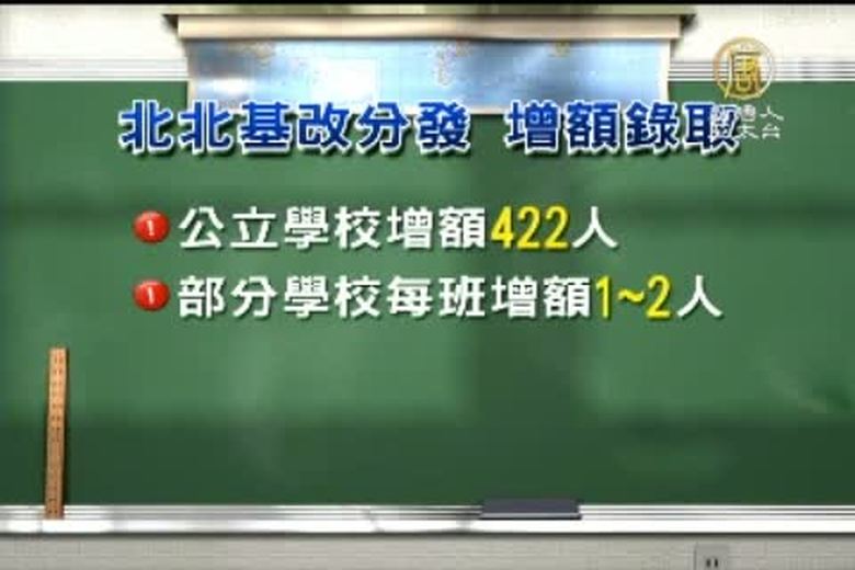接著來看到爭議不斷的北北基重新分發。台北市長郝龍斌週一上午宣布,北北基改分發將採增額錄取的方式處理,總計公立學校增額422人,估計部分學校每班增額1到2人;北市、新北市私校因此各出現約兩百個缺額,郝龍斌強調,已經跟教育部、新北市、基隆市達成共識,同意私校辦理二次招生,將私校招生衝擊減到最低。 //asset2.ntdtv.com.tw/public/uploads/video/2011/07/19/20110719-3491841.flv 北北基|分發|增額錄取|台北市長|郝龍斌2011-07-18 21:22:43