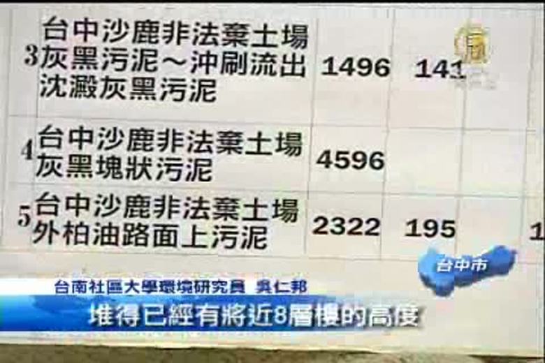台中大肚山,環保署日前破獲了十年來,最大宗的有害廢棄物傾倒案,違規傾倒的時間長達6、7年,堆疊成一座大約8層樓高的小山,環保團體擔心已經對農作物造成污染 。 //asset1.ntdtv.com.tw/public/uploads/video/2011/07/22/20110722-3558911.flv 有害廢棄物|傾倒|汙染|台中|大肚山2011-07-21 21:16:49