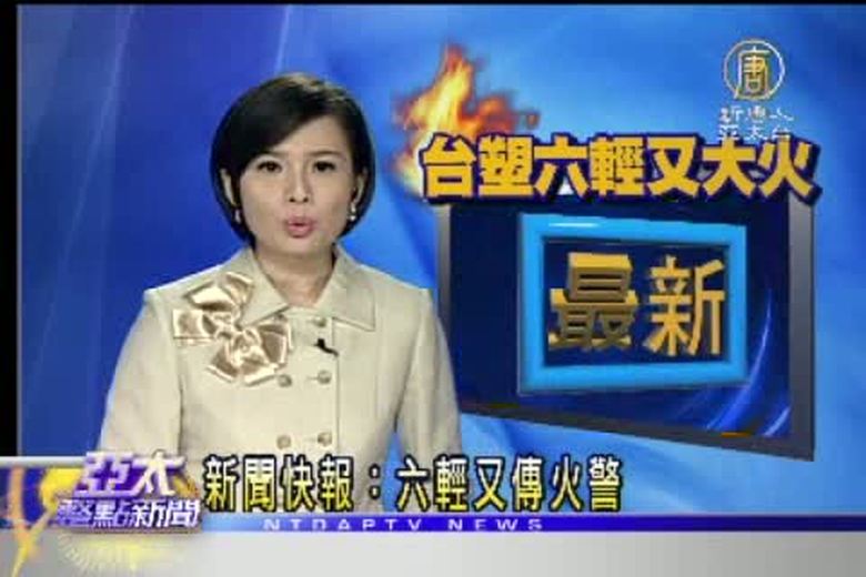 來關心六輕公安的最新訊息,五月十二日才發生火災的台塑六輕,在今天晚間七點三十三分,再傳火警,位於六輕「台塑大公用一廠」的二路五道氫氣管線,也就是距離上次爆炸地點不遠處,再度起火,根據現場消防人員表示,燃燒的火勢有兩米寬四米高,消防人員還在努力灌救中。 //asset2.ntdtv.com.tw/public/uploads/video/2011/07/27/20110727-3646306.flv 六輕|火警2011-07-26 21:12:06