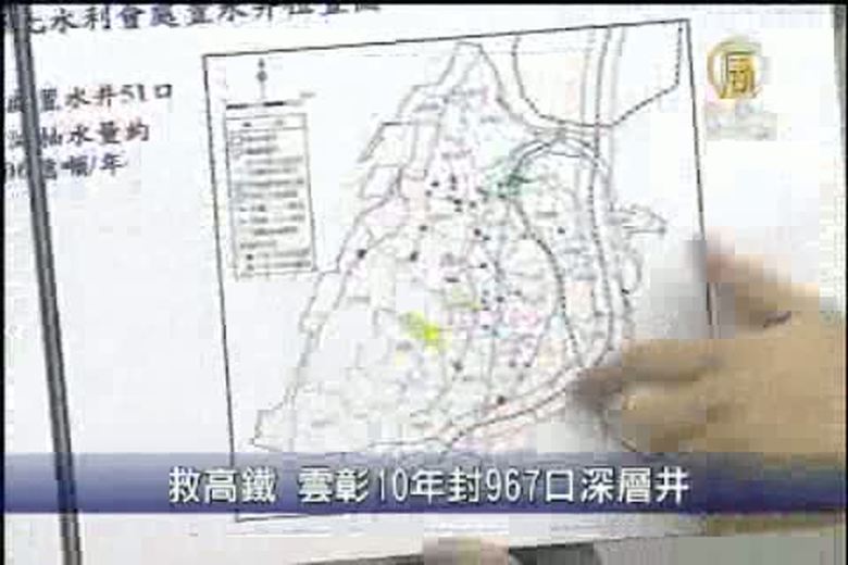 接著關心台灣高鐵安全。為了解決雲林、彰化的地層下陷問題,行政院在昨天(25日)再度召開跨部會會議,封井計畫終於拍板定案,預計在十年之內要封深層井967口,18萬口農民灌溉用的淺層井先不封,不過,農民還是擔心,沒找到替代水源就開始封井,等於是變相滅農。 //asset1.ntdtv.com.tw/public/uploads/video/2011/07/27/20110727-3643485.flv 高鐵|地層下陷|封井|農民|灌溉2011-07-26 21:07:45