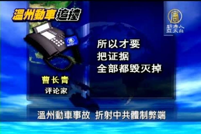 新聞頭條,仍舊帶您鎖定中國溫州動車追撞意外,事件發生後,短短不到三天,在25日早晨約七點,就已經恢復通車,中共官方還表示,要在現場就地將車體分解掩埋,這個舉動遭到許多中國民眾質疑,認為政府想毀屍滅證,日前就有網友將掩埋過程拍攝下來上傳到網路,引發許多網友強烈不滿,帶您直擊不幸罹難者的家屬,對中共當局的質疑與不解。 //asset3.ntdtv.com.tw/public/uploads/video/2011/07/27/20110727-3643156.flv 動車|相撞|家屬|車箱|掩埋2011-07-26 22:18:13