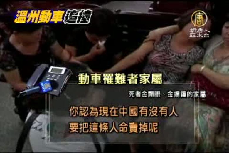 新聞頭條,持續帶您鎖定,7.23溫州動車追尾特大事故的善後事宜,一波未平一波又起;在各界仍然質疑當局不到24小時匆忙碾碎事故車廂就地掩埋之際;有家屬爆出當局不讓領回死者的遺體;家屬向鐵道部陳情,不過,無人理會。 //asset2.ntdtv.com.tw/public/uploads/video/2011/07/28/20110728-3663848.flv 動車|家屬|遺體|鐵道部|中國2011-07-27 21:03:04