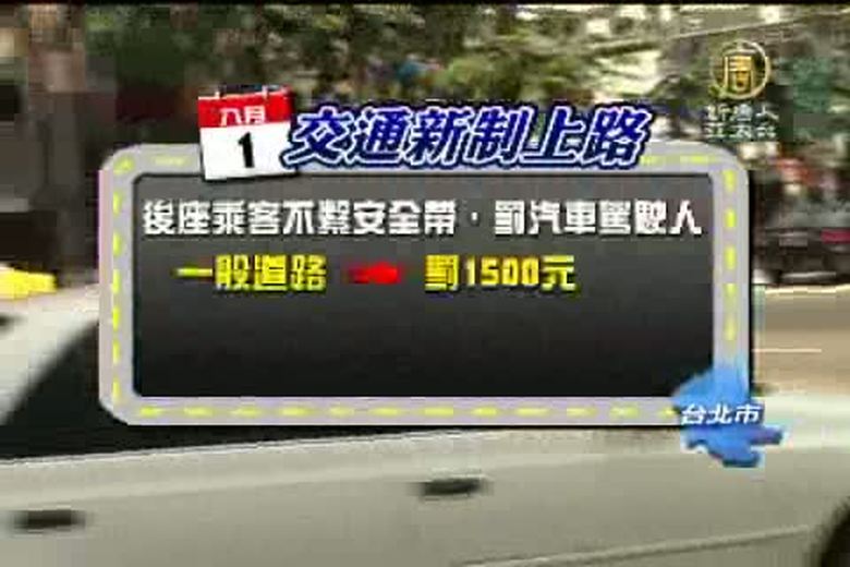 從今天,八月一日開始,小型車後座的乘客也必須強制繫安全帶了,根據最新的《道路交道管理處罰條例》規定,後座乘客不繫安全帶,罰金從1500元起跳,處罰的是汽車駕駛人。那對載客做生意的計程車駕駛該怎麼辦?還好,新法規定,運將已經告知乘客繫安全帶,如果乘客還是不遵守,處罰乘客。 //asset3.ntdtv.com.tw/public/uploads/video/2011/08/02/20110802-3759222.flv :強制繫安全帶|計程車|台北市2011-08-01 21:16:03