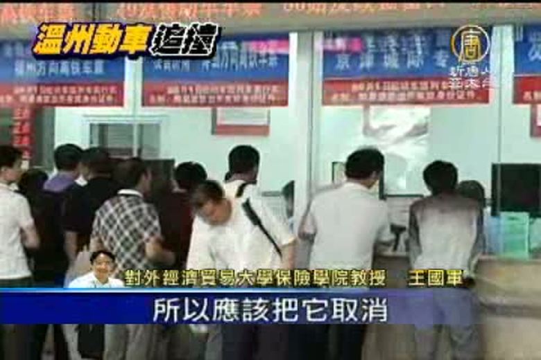 中國“7‧23”動車追尾事故,死難者賠償標準引起爭議,其中鐵道部按票價2%強制徵收的旅客意外傷害保險費,8年來上百億保費的去向也引起關注,大陸學者認為,鐵道部缺乏監督,歷年來這部分保費成了黑箱,因此建議廢止此條例。 //asset1.ntdtv.com.tw/public/uploads/video/2011/08/04/20110804-3799740.flv 動車|賠償|保險費|黑箱|鐵道部2011-08-03 22:07:45