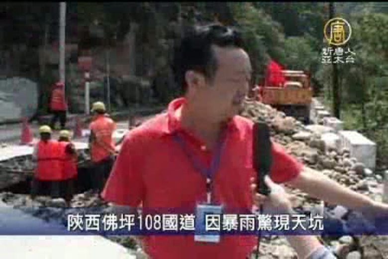 8月1日中午,連日暴雨造成大陸108國道陝西佛坪段出現巨大天坑,導致當地交通陷入癱瘓。 //asset1.ntdtv.com.tw/public/uploads/video/2011/08/04/20110804-3799741.flv 天坑|土石流|暴雨|國道|陝西2011-08-03 21:25:58