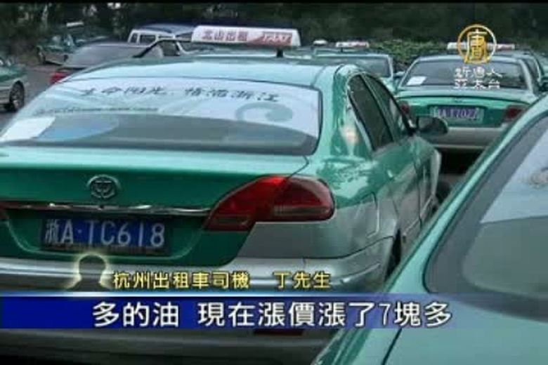 中國杭州計程車(出租車),從8月1日起大規模停運,罷工司機們說,塞車與油價高漲,使營業成本大增,但計程車的運營價卻5年未變,在高物價和高房價的生活壓力下,已經沒有生存空間,於是集體罷工要求減少份子錢、提高起步價等訴求。 //asset2.ntdtv.com.tw/public/uploads/video/2011/08/04/20110804-3800604.flv 計程車|出租車|罷工|油價|杭州2011-08-03 21:17:02