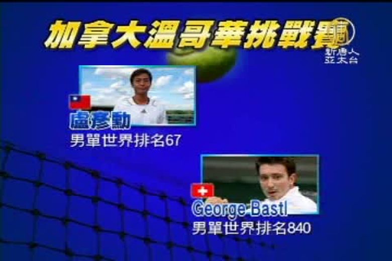 好,來看到,另一位台灣體壇網球好手,盧彥勳,則是在今天先傳來捷報。盧彥勳角逐加拿大溫哥華挑戰賽,週三在男單首輪以6比2、6比1擊敗瑞士選手巴斯托,順利晉級第2輪。目前男單世界排名67的盧彥勳,在溫哥華挑戰賽中,被列為頭號種子,首輪對手是瑞士籍的巴斯托,除了排名落後盧彥勳一大截、目前男單世界排名840、而且已經36 歲,盧彥勳沒有碰上多少障礙,只花了1小時又2分鐘,就順利晉級第二輪。盧彥勳下一輪碰到的對手是英國的博格丹諾維奇,目前男單世界排名372。 //asset1.ntdtv.com.tw/public/uploads/video/2011/08/04/20110804-3799736.flv 盧彥勳|網球|加拿大溫哥華挑戰賽2011-08-03 21:04:08