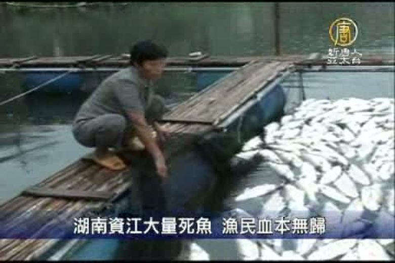 近日,中國湖南資江新邵段從上游到下游百餘裡的河道,發現大規模的死魚重達200多噸,白花花的魚屍浮在水面上,令人觸目驚心。受害的漁民預估,直接經濟損失可能超過兩千萬元人民幣。 //asset3.ntdtv.com.tw/public/uploads/video/2011/08/15/20110815-3976817.flv 死魚|漁民|資江|污染|湖南2011-08-14 21:22:26