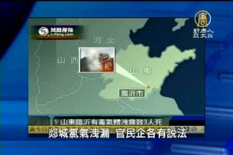 11日晚間山東郯城縣的山東陽煤恆通化工廠突然發生氯氣洩漏事故。不過對於氯氣洩露程度以及事故導致的中毒人數,民間、官方和企業卻各有說法。 //asset1.ntdtv.com.tw/public/uploads/video/2011/08/15/20110815-3978314.flv 氯氣洩漏|臨沂|郯城縣|山東2011-08-14 21:19:40