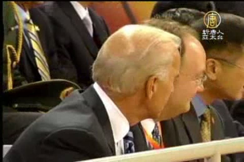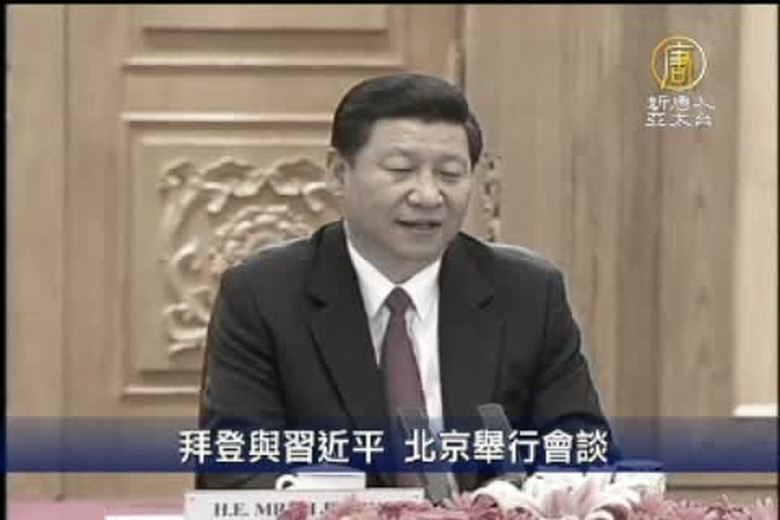 來看到美國副總統拜登,18日在北京人民大會堂,和中共國家副主席習近平舉行會談,拜登表示,有關美國經濟衰退的報導,是太早下定論,他表示美中應共同為全球經濟穩定而努力。不過接下來的閉門會談,陪同的人還有中國外交部長楊潔箎、和剛到任的美國駐北京大使駱家輝。稍晚,中共官方新華社發出新聞稿,指習近平在會談中就發 展中美合作夥伴關係提出4點建議,也提及台灣西藏問題。不過,到目前,還沒有見到美方關於拜登在會談中講話的官方詳細資訊。據了解,現場發生了一個小插曲,拜登在公開致詞到一半時,安全人員就開始驅趕記者,引發外國媒體 //asset2.ntdtv.com.tw/public/uploads/video/2011/08/19/20110819-4043683.flv 拜登|駱家輝|楊潔箎2011-08-18 21:06:23