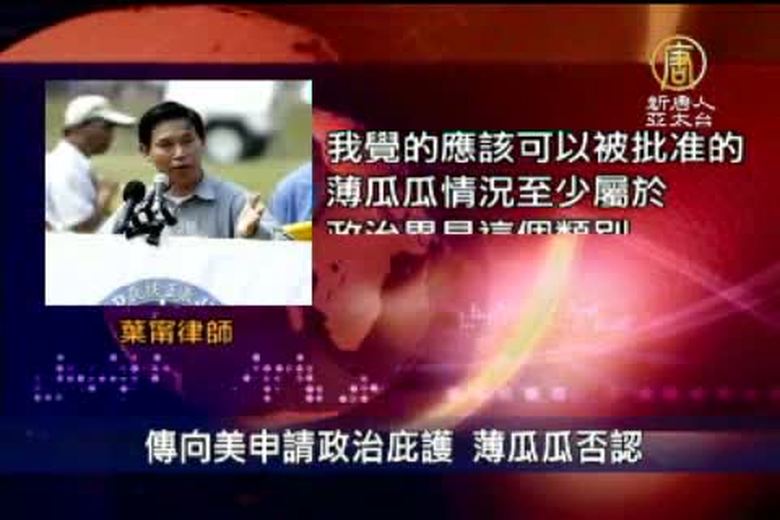 重慶前市委書記薄熙來的兒子薄瓜瓜成為外界關注的新焦點。傳言說薄瓜瓜在美國尋求政治庇護。英國媒體《每日電訊報》披露,薄瓜瓜日前被美國官員帶走。但薄瓜瓜向《泰晤士報》表示,這些都是「謠言」。 //asset1.ntdtv.com.tw/public/uploads/video/2012/04/16/20120416-7924045.flv 薄瓜瓜|周永康|薄熙來|谷開來|政治庇護2012-04-15 21:08:06