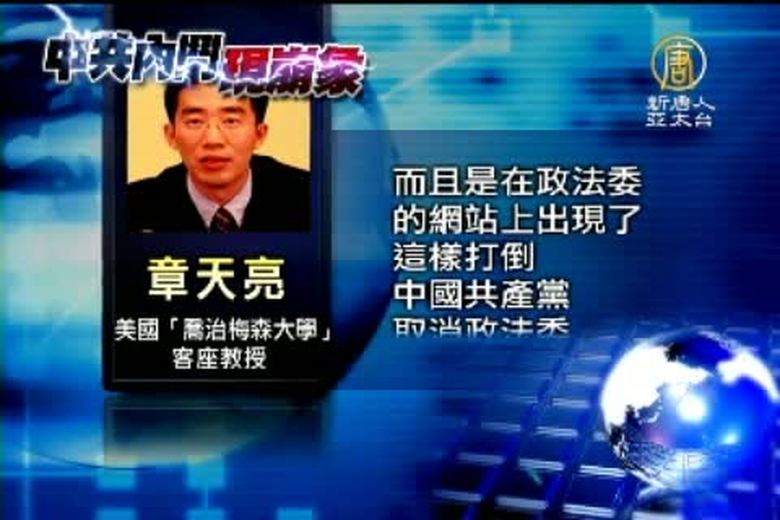 前重慶市委書記薄熙來被撤職後,中央政法委書記周永康的惡行醜聞也被大量曝光。大陸東北地區出現了許多「法辦周永康」的條幅標語。另外,大連一個區委政法委的網站被黑客侵入,首頁出現了「打倒中國共產黨」的字樣。評論人士認為,江澤民﹑周永康代表的「血債派」,在民眾中積怨已久,胡溫應該抓住這個機會,清算「血債派」的全部罪惡。 //asset2.ntdtv.com.tw/public/uploads/video/2012/04/21/20120421-8004018.flv 薄熙來|王立軍|中共內鬥|胡溫|活摘|法輪功2012-04-20 21:38:00