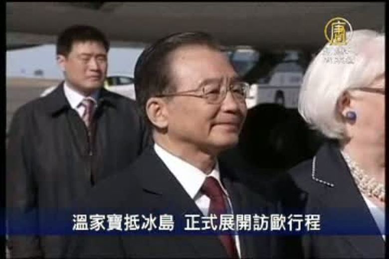 中共總理溫家寶在星期五(20日)抵達冰島首都雷克雅維克,正式展開這一次的歐洲訪問行程。溫家寶也是過去41年來,第一位訪問冰島的中共總理。溫家寶預計在冰島停留兩天。近年來,隨著中國與冰島的經貿關係往來密切,中國已經成為冰島在亞洲地區最大的貿易伙伴。溫家寶也表示,未來將與冰島在海洋、極地開發、航運等方面加強合作關係。在結束冰島的行程後,溫家寶將再轉往瑞典、波蘭、德國等地訪問,並出席在德國漢諾威舉行的工業博覽會。 //asset3.ntdtv.com.tw/public/uploads/video/2012/04/22/20120422-8016380.flv 溫家寶|訪問|冰島2012-04-21 21:37:39