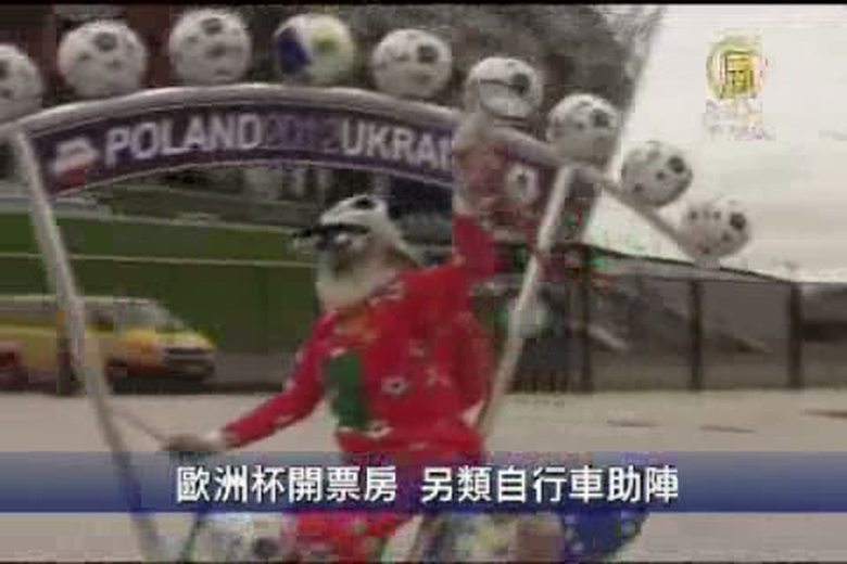 星期一(23號),2012年歐洲杯足球賽,在主辦國波蘭和烏克蘭分別舉行儀式,宣布正式開始售票。這一天,有一名自行車愛好者騎著最新完成的另類作品,提前為比賽助陣。 //asset3.ntdtv.com.tw/public/uploads/video/2012/04/25/20120425-8051383.flv 歐洲杯|足球賽|波蘭|烏克蘭|自行車2012-04-24 21:46:06