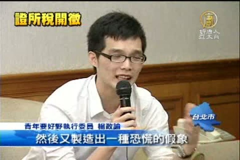 證所稅行政院版本出爐,引起投資人、企業大加撻伐,不過反貧困聯盟和青年團體出面聲援,認為課徵證所稅是符合稅制公平,而且現在是最好時機,不過行政院證所稅版本有免稅額項目,反貧困聯盟召集人簡錫(土皆)抨擊,大戶可以藉此鑽漏洞。 //asset3.ntdtv.com.tw/public/uploads/video/2012/04/30/20120430-8145063.flv 證所稅|反貧困聯盟|青年團體|台北2012-04-29 21:38:48