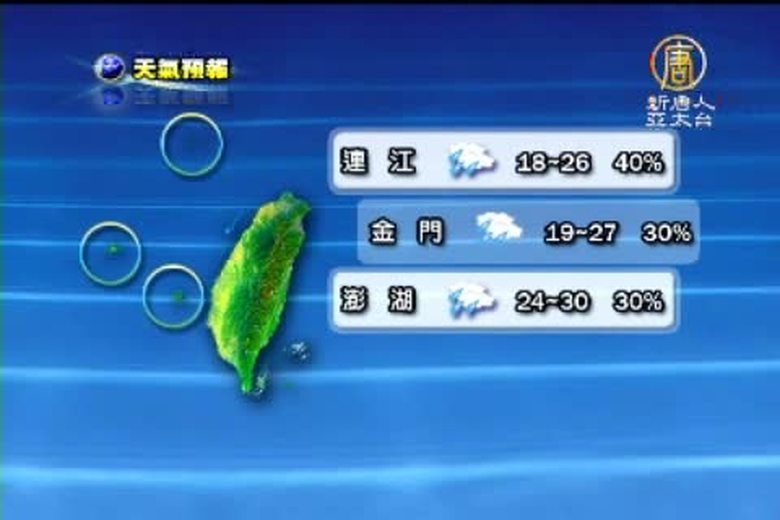 以下帶您關心4月30號星期一,全台各地以及世界各主要城市的天氣預報。 //asset2.ntdtv.com.tw/public/uploads/video/2012/04/30/20120430-8145074.flv 2015-09-25 19:36:34