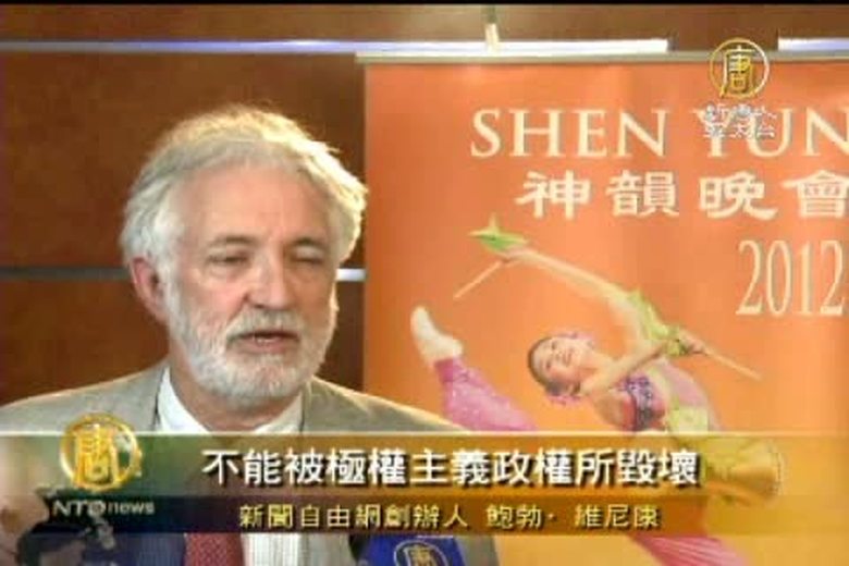 在澳洲創辦了中國信息網站的鮑勃‧溫尼卡姆先生,今年已是第五年觀看神韻演出了,作為神韻藝術團的忠實觀眾,鮑勃先生對演出所展現的真實中國感到震撼,同時他也感嘆五千年傳統中國文化的深厚內涵,他說神韻演出是人類精神的瑰寶,每個人都應該來觀看。 //asset1.ntdtv.com.tw/public/uploads/video/2012/04/30/20120430-8145070.flv 神韻|澳洲|雪梨2012-04-29 21:21:28