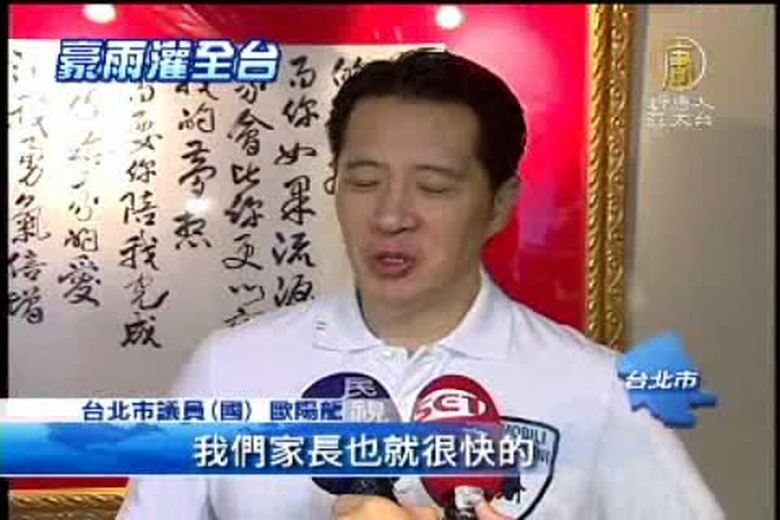 昨天暴雨襲擊台灣,台北市在12號上午突然宣布即刻停班停課的作法,讓不少家長相當錯愕,而當家長的藝人也是。藝人李明依批評,市府做法太果斷,傅娟則是冒著大雨把小孩接回家,而林葉亭把兒子繼續留在學校上課。 //asset1.ntdtv.com.tw/public/uploads/video/2012/06/14/20120614-8918707.mp4 暴雨襲台|停班停課|藝人|李明依|傅娟|林葉亭2012-06-13 22:17:20