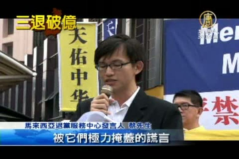 七月一日,馬來西亞退黨服務中心舉辦聲援三退活動,祝賀一億一千九百多萬三退勇士退出了中共及其相關組織,為自己選擇了美好的未來。請看本台記者發自吉隆坡的採訪報導。 //asset3.ntdtv.com.tw/public/uploads/video/2012/07/03/20120703-9239422.mp4 三退|退黨|共產黨|馬來西亞|吉隆坡2012-07-02 21:34:06