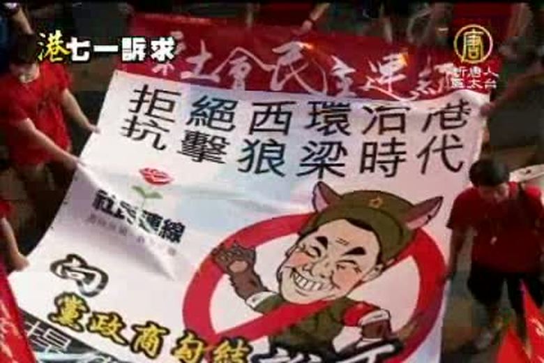 在香港慶祝主權移交15週年之際,發起七一遊行的民間人權陣線表示 ,至少有40萬人響應香港民主派號召,上街遊行,表達不滿並提出各種政治和社會訴求。民陣認為是民意的總爆發。泛民政黨表示,遊行人數眾多顯示港人反對中共操控香港。 //asset3.ntdtv.com.tw/public/uploads/video/2012/07/03/20120703-9239386.mp4 七一大遊行|抗議|香港回歸|一國兩制|香港2012-07-02 21:29:54
