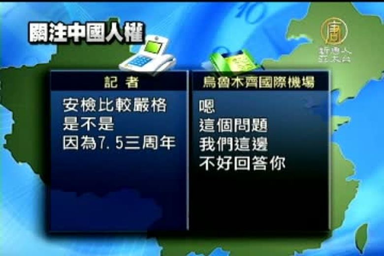 新疆7.5事件屆滿三周年,烏魯木齊街頭隨處可見持槍巡邏的特警,市內到處廣設檢查站,嚴查往來的行人及車輛;當地機場更設專用通道對旅客進行安檢;有維族婦女哭訴,機場安檢人員說她是維族人,要求她脫衣檢查還襲胸,讓她倍感羞辱。 //asset1.ntdtv.com.tw/public/uploads/video/2012/07/06/20120706-9292505.mp4 新疆|75事件|烏魯木齊|安檢|人權2012-07-05 21:22:38