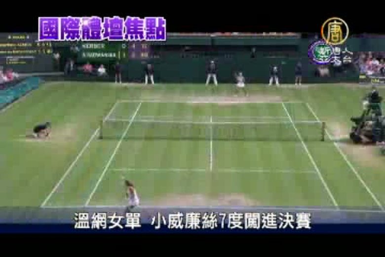 週四(5日)美國網球女將小威廉絲,今天在溫布頓網球錦標賽女子單打4強賽奮戰過關,以6比3、7比6擊敗第2種子白俄羅斯好手艾薩蘭卡,生涯第7次闖進溫網決賽。 //asset2.ntdtv.com.tw/public/uploads/video/2012/07/07/20120707-9308198.mp4 網球|小威廉絲|溫布頓|女單|決賽2012-07-06 21:48:40