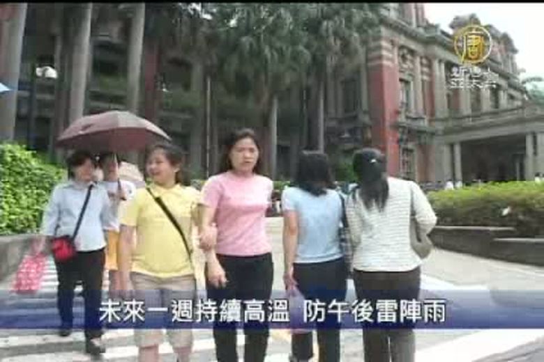 今天仍舊是高溫的天氣形態,西半部及宜蘭地區最高溫度,都達到攝氏35度。而且根據環保署的檢測,今天全台紫外線指數都達到「危險級」。氣象局預估,未來一周將持續炎熱高溫的天氣型態,西半部大多在34到36度,東半部約32度,提醒民眾注意防曬。另外,在西半部及宜蘭地區,午後會有局部雷陣雨,提醒民眾在山區及溪邊活動,要注意安全。 //asset2.ntdtv.com.tw/public/uploads/video/2012/07/07/20120707-9310078.mp4 2012-07-06 21:15:46