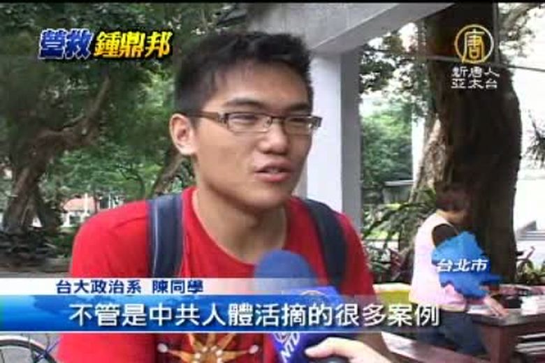 台灣法輪功學員鍾鼎邦,被中共當局拘捕至今仍未獲救,各界營救聲浪不斷,除了法政界人士,接下來的新聞帶您看到,經由鍾鼎邦的女兒鍾愛,臉書上營救父親的活動,台大的學生,也逐漸關注這起事件。幾天前,校園裡甚至還掛起了聲援鍾鼎邦的布條。台大學生說,鍾鼎邦被逮捕,已經傷害兩岸互動往來,台灣政府必須積極營救鍾鼎邦,給台灣人一個交代。 //asset3.ntdtv.com.tw/public/uploads/video/2012/07/07/20120707-9312411.mp4 鍾鼎邦|台大|法輪功|傅鐘|營救2012-07-06 21:55:18