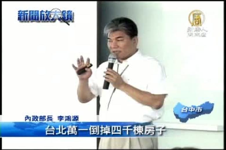 核能安全引發關切,如果將地震的因素考量進來,更令人擔心了。南投6月初發生規模6.3地震,雖然沒有造成嚴重傷亡,不過內政部長李鴻源,卻憂心忡忡,學者出身的李鴻源說,如果這場地震發生在台北市,會有4000棟房子倒塌,而根據國家地震中心的研究,也證明李部長的擔心,並不是空穴來風。 //asset1.ntdtv.com.tw/public/uploads/video/2013/07/10/20130710-15577192.mp4 台灣要聞|李鴻源|地震|倒塌|山腳斷層|台中2013-07-09 21:47:08