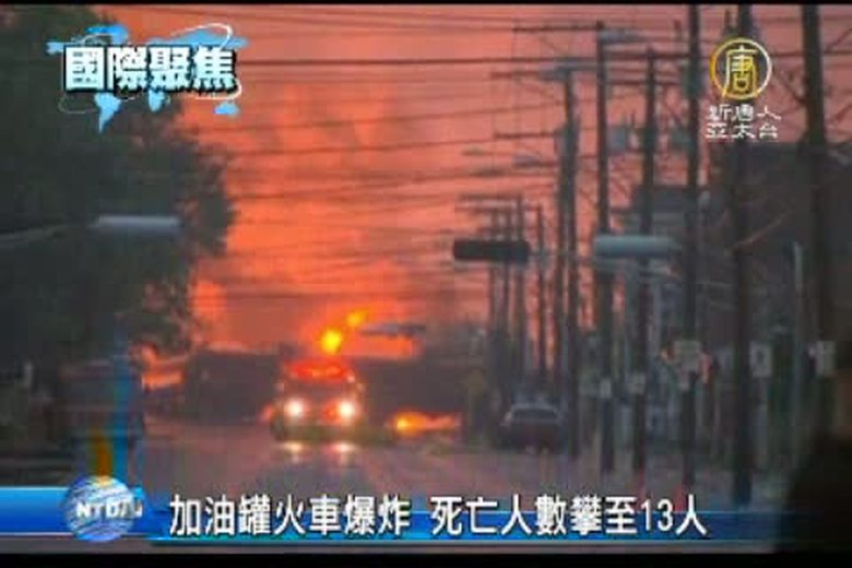 加拿大魁北克省梅岡蒂克鎮上週六(6號)發生的油罐列車出軌爆炸事件中,已經證實有13人死亡,,40棟建築被爆炸損毀,另外還有40人失蹤。請看記者的報導。 //asset1.ntdtv.com.tw/public/uploads/video/2013/07/10/20130710-15577197.mp4 國際聚焦|加拿大|油罐|火車|爆炸|哈珀2013-07-09 21:34:11