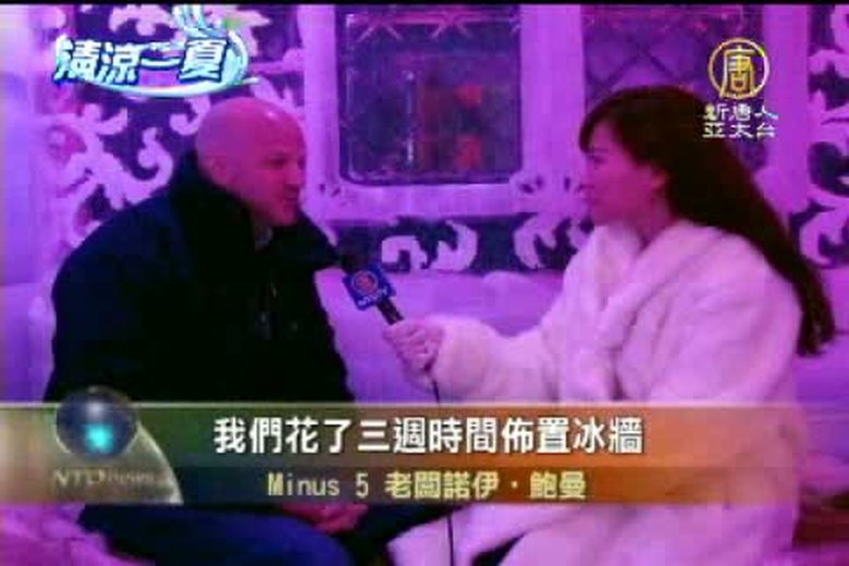 鏡頭轉到紐約。 紐約有一個既可以看冰雕,還可以邊欣賞冰雕邊喝冷飲的地方,進到裡面,不只暑氣全消,還得穿上厚大衣,接下來請跟著我們的記者去一探究竟。 //asset3.ntdtv.com.tw/public/uploads/video/2013/07/10/20130710-15577188.mp4 國際萬象|冰室|冷飲廳|冰雕|Minus|5|紐約2013-07-09 22:30:23