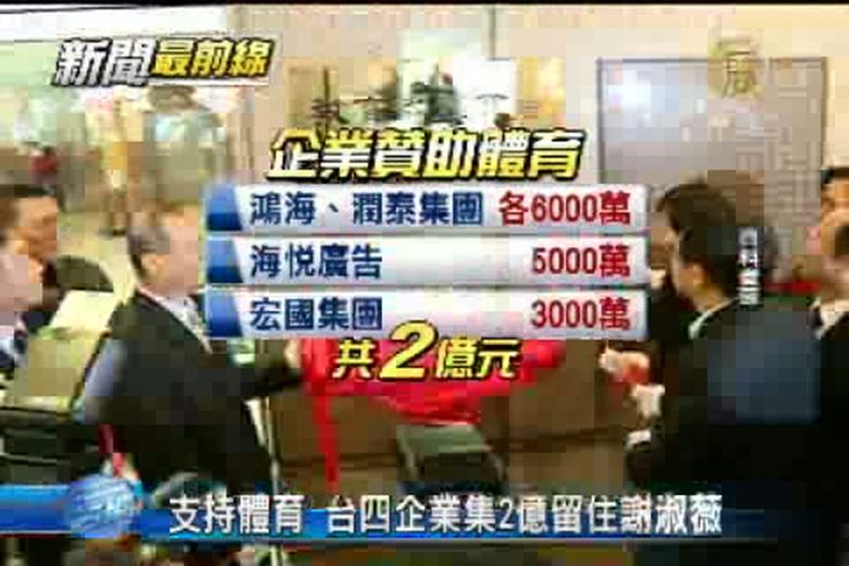 溫布頓女雙球后謝淑薇傳出有中國企業出重金挖角,國內企業界也展現留人誠意。教育部長蔣偉寧邀宴企業界,希望企業以實際行動支持體育發展。一個晚上就募集2億元。但接下來經費怎麼用,才是關鍵。 //asset2.ntdtv.com.tw/public/uploads/video/2013/07/10/20130710-15577203.mp4 台灣要聞|謝淑薇|溫網2013-07-09 21:04:26