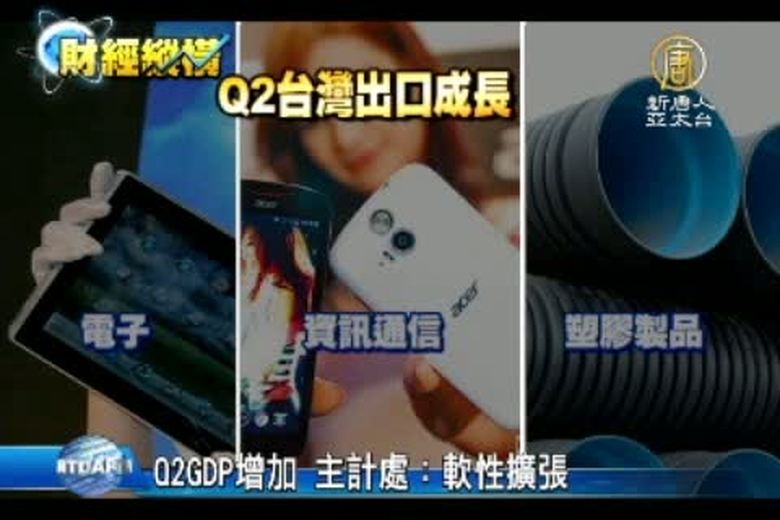 來關心財經消息。 主計處今天(31日)公布第二季經濟成長率預估值,從5月預測的1.98%,提高到2.27%,增加0.29個百 分點,主要原因是整體出口成長,以及民間消費回溫,不過主計處表示,單一季無法確定景氣就此好轉,目前經濟仍處於「軟性擴張」狀態,全年GDP成長率預估還是維持2.4%。 //asset3.ntdtv.com.tw/public/uploads/video/2013/08/01/20130801-15996796.mp4 財經縱橫|主計處|經濟成長率|景氣|GDP|軟性擴張2013-07-31 21:14:02