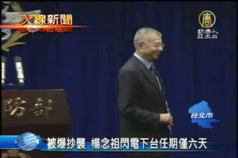 昨晚(7日)前國防部長楊念祖閃電請辭,震驚外界。由於楊念祖被爆料,2007年主編的戰略書籍,文章抄襲中國學者,對此楊念祖承認過失,表示該篇文章當初請人代為撰寫,再得知周刊查證此事並確認有抄襲之後,楊念祖立刻向馬總統表達請辭。 //asset3.ntdtv.com.tw/public/uploads/video/2013/08/08/20130808-16182326.mp4 台灣要聞|楊念祖|國防部|洪仲丘2013-08-07 21:03:43