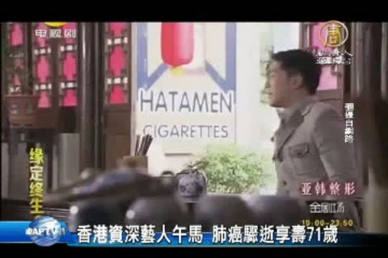 香港資深演員午馬,今天凌晨因為肺癌病逝,享壽71歲。午馬演戲超過五十年,直到逝世前一個月,還在微博上傳劇照。午馬的太太透露,其實十個月前,午馬的肺癌已經擴散,但他這幾個月,很認真的享受人生,瀟灑的走完人生的最後道路。 //asset3.ntdtv.com.tw/public/uploads/video/2014/02/05/20140205-19527697.mp4 娛樂星球|午馬|病逝|六月|苗可麗|台灣2014-02-04 20:28:16