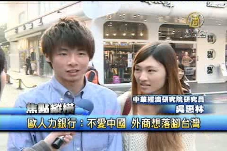 台灣各界警告中共挖角危機,不過,隨著中國投資環境評比下滑,現在有評論指出,更多的外商希望落腳台灣,究竟台灣優勢在哪裡?怎麼看現在人力市場的問題癥結?今天的焦點縱橫,為您解析。 //asset1.ntdtv.com.tw/public/uploads/video/2014/02/07/20140207-19560401.mp4 焦點縱橫|歐洲人力銀行|外商|人才外流2014-02-06 21:15:35