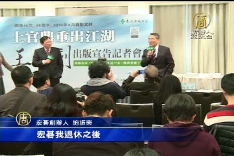 前行政院長劉兆玄,高中時期就以筆名上官鼎,創作武俠小說,封筆46年後,今天他以作品「王道劍」重出江湖,不過,外界關心,劉兆玄是否在以古諷今,向目前執政者提建言。 //asset3.ntdtv.com.tw/public/uploads/video/2014/02/07/20140207-19560356.mp4 台灣新聞|上官鼎|劉兆玄|王道劍|施振榮|武俠小說|台北2014-02-06 21:08:16