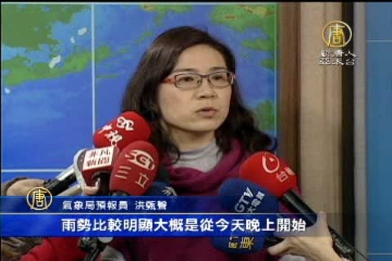 新聞一開始先來帶您關心,受到華南雲區東移以及大陸冷氣團南下的影響,天氣不僅變得又濕又冷,而且明天就達到寒流等級,最低溫只有9度,高山地區也有可能會下雪。雖然下週三天氣會逐漸略為回暖,不過幅度有限,元宵節要出門賞花燈的民眾,要有禦寒的心理準備。 //asset3.ntdtv.com.tw/public/uploads/video/2014/02/09/20140209-19592312.mp4 台灣要聞|氣象局|冷氣團|低溫|寒流|元宵2014-02-08 22:49:33