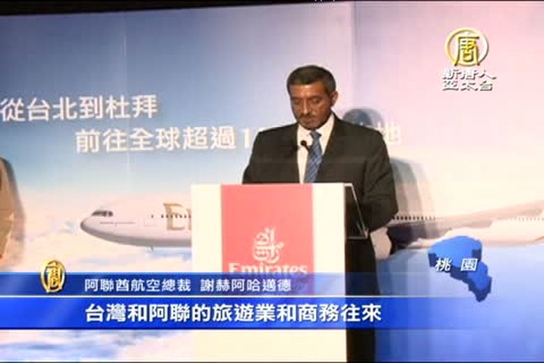 阿聯酋航空,台北-杜拜客運航線今天(10號)首航,總裁阿哈邁德親王表示,非常看好台北-杜拜航線的發展,明天還將在台灣召開說明記者會。 //asset2.ntdtv.com.tw/public/uploads/video/2014/02/11/20140211-19614161.mp4 台灣寫真|航空|杜拜|阿聯酋航空|桃園2014-02-10 21:58:19