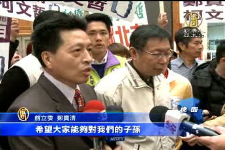 今天上午台大醫師柯文哲特地到桃園為前立委鄭寶清站台,並表示台北市長選舉在野大聯盟勝選機會最高。會中鄭寶清也宣布正式參選桃園市長,兩人以「改變台灣,北桃開始」互相加油打氣。 //asset3.ntdtv.com.tw/public/uploads/video/2014/02/17/20140217-19737787.mp4 台灣要聞|柯文哲|鄭寶清|民進黨|在野大聯盟|桃園2014-02-16 21:08:32