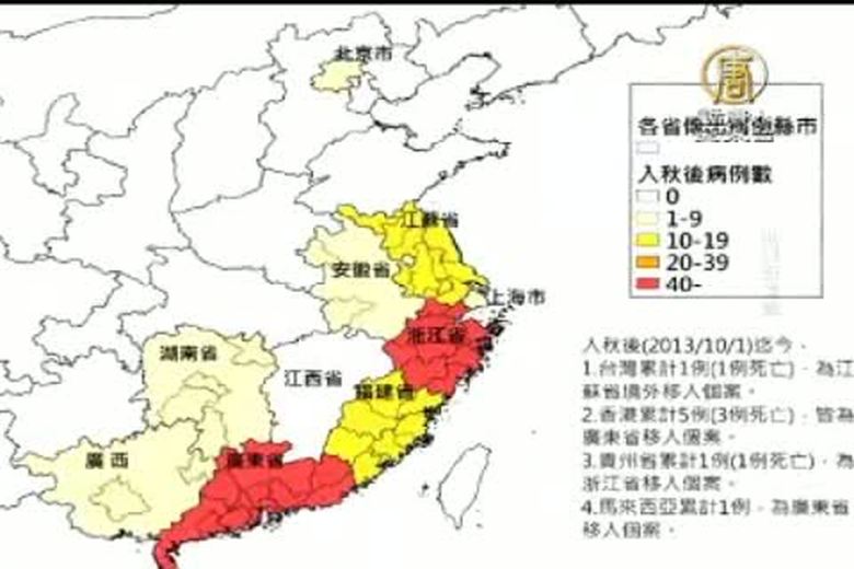 關心中國H7N9禽流感消息,今天廣東與湖南又傳出確診病例,目前,H7N9在中國已經擴大到348例,並奪走77條人命。台灣疾管署已經把包括廣東、浙江、江蘇、福建、上海、北京等八省二市,列為第二級疫情旅遊警示。世界動物衛生組織表示,目前H7N9流感主要為從禽類傳給人類,不過,可能存在有限的、非持續性的人傳人情形。 //asset2.ntdtv.com.tw/public/uploads/video/2014/02/17/20140217-19737058.mp4 H7N9禽流感2014-02-16 21:01:18