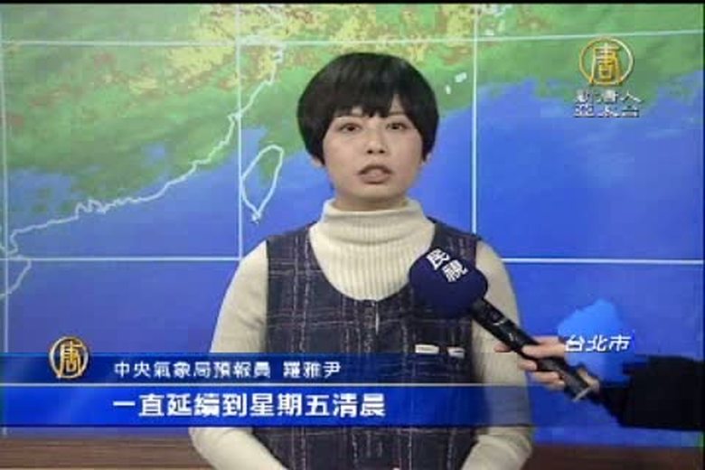 來關心天氣,明天(20日)持續受到寒流影響,但各地降雨的情況會逐漸減少,轉為乾冷的天氣型態,北部及東半部白天高溫只有14 ~ 15度,預計這波寒流到週五(21日)白天才會減弱,提醒觀眾朋友特別留意保暖。 //asset3.ntdtv.com.tw/public/uploads/video/2014/02/20/20140220-19796018.mp4 2015-08-28 19:27:00