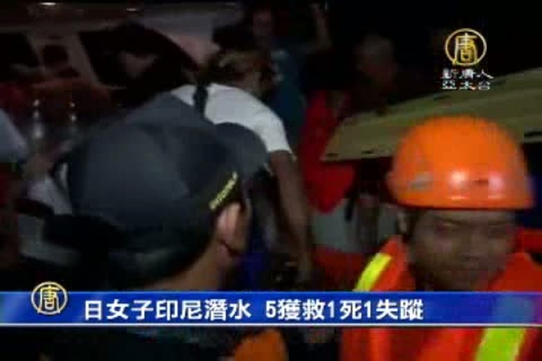 上週五,在印尼峇裡島附近海域潛水失蹤的7名日本女子,其中的5名終於在昨天被搜救人員發現,得以生還。今天印尼官方又宣佈,在峇裡島南方海域尋獲一具屍體,另外還有一人下落不明。 //asset2.ntdtv.com.tw/public/uploads/video/2014/02/20/20140220-19814280.mp4 國際聚焦|印尼|峇裡島|日本|藍夢島|遇難2014-02-20 23:34:50