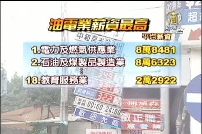 電力、燃氣業均薪高 教服業4倍