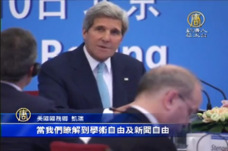 美國國務卿凱瑞今天在北京進行第二天的美中戰略對話,昨天,他敦促中共在周遭爭議海域遵守海事法,以降低區域緊張,今天他則主動提及了新聞自由。 //asset1.ntdtv.com.tw/public/uploads/video/2014/07/11/20140711-24956600.mp4 國際新聞|凱瑞|美中戰略對話|新聞自由|最新消息2014-07-10 23:22:08