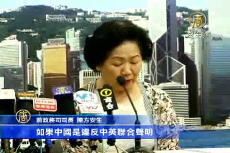 香港首任政務司司長「陳方安生」,與香港民主黨創黨主席「李柱銘」,繼早前出訪美加之旅,呼籲國際關注香港民主普選問題後,本月再出訪英國。星期天回到香港報告此行成果,他們表示英國社會非常關注白皮書的問題。 //asset2.ntdtv.com.tw/public/uploads/video/2014/07/22/20140722-25280677.mp4 真相中國|陳方安生|李柱銘|訪英|香港|普選2014-07-21 21:26:24