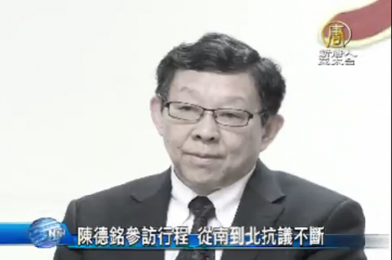 陳德銘今天上午,前往台南,拜會宗教人士,下午則到台北至善養老院進行參訪,不過從南到北,抗議聲浪不斷,而對於台灣的政治發展局勢,陳德銘今天透露,他每天都看新聞到半夜一兩點,似乎也間接證實來台目的,並非只是經貿參訪。 //asset3.ntdtv.com.tw/public/uploads/video/2014/12/15/20141215-31376686.mp4 台灣新聞|陳德銘|中共統戰|楊月清|台北|最新消息2014-12-14 21:09:12