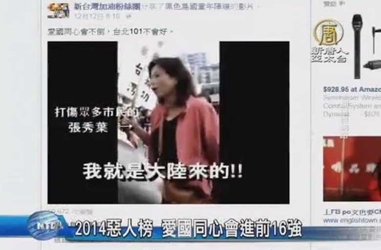2014台灣十大惡人比賽,目前進入前十六名候選人角逐寶座,其中包括長期在台北101大樓前,拿著中共五星旗,散布共產思想,甚至攻擊法輪功學員與路人的愛國同心會,也在惡榜名單上。 //asset3.ntdtv.com.tw/public/uploads/video/2014/12/17/20141217-31474623.mp4 台灣要聞|十大惡人|愛國同心會|101|馬英九|蔡正元|魏應充|最新消息2014-12-16 23:21:55